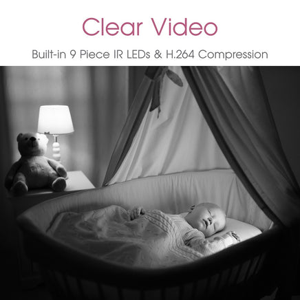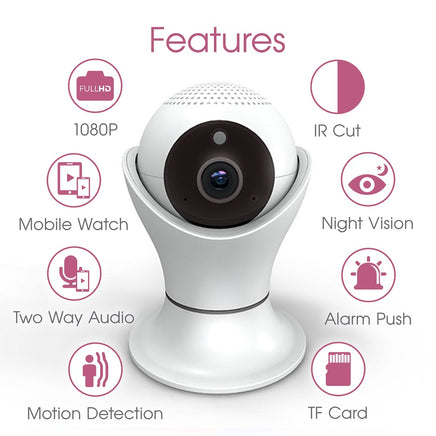 The 1080P high resolution lens provide crystal clear images and video day and night. Eleven infrared sensors around the camera lens allows recording of video in a completely dark room with as little illumination as 0.1 Lux. Alarm push motion detection will notify you when there is any movement and via the smartphone you can remotely pan (355 degrees horizontally) and tilt (90 degrees vertically) the camera to view everything in the room.