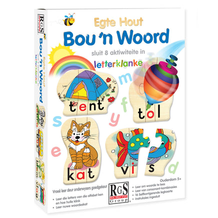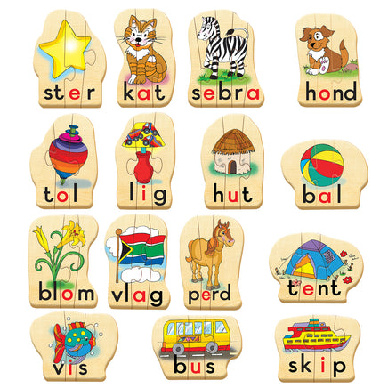 Hierdie speletjie sal jou kind help om eenvoudinge woorde te hoor, lees and spel en klanke te meng. 16 Spel-legkaarte, elk met stukke wat slegs in mekaar pas. Gedetailleerde instruksies met 8 verskillende speletjies vir jong kinders.