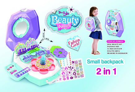 This Diamond Beauty Backpack Set is ideal for all those little girls who are crazy about nail art. This set allows your little princess to work her creative art skills and designing her own nails. Mix and match colours. Large variety of stickers and stamps and includes paint brushes, stamper, pretend nails. Carry the case where ever you go, play with all the fun pieces and pack it back neatly once done!