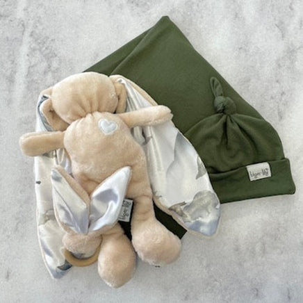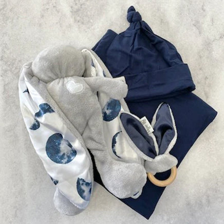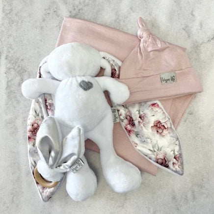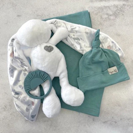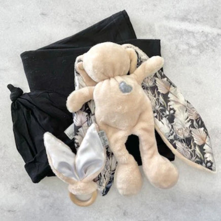 This Gift Set comprises a Cuddle Bunny, a Swaddle Blanket & Beanie Set and a Teether
