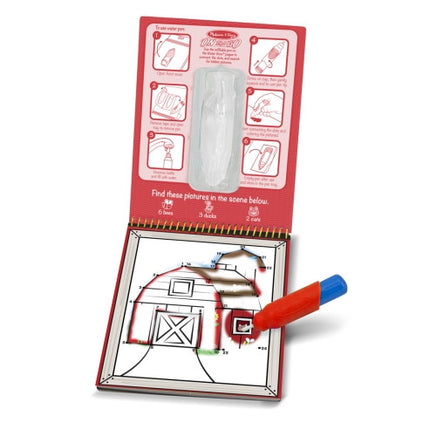 No-mess painting for kids! This exciting paint-with-water coloring book includes four reusable pages and a refillable water pen. Simply use the pen to color in each scene--details and vibrant color appear with every stroke! Then let the page dry to erase the pictures and fill it in again and again. This farm-themed book includes four connect-the-dots challenges, scenes to color, and a search-and-find activity for each scene. The chunky-sized water pen is easy for kids to hold and stores neatly right in the front cover, so Water WOW books make ideal travel activity books for kids!Β