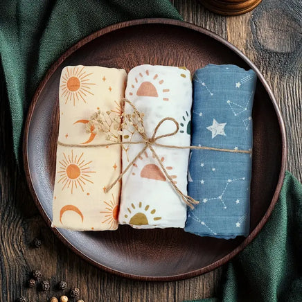 3-Pack Silky-Soft Cotton Muslin Swaddles - Sun, Moon & Stars (Large)