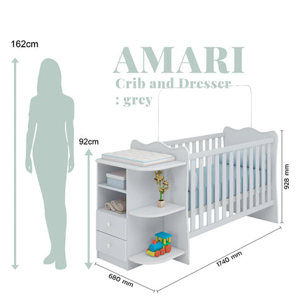 • High Safety Standards: Made with quality, non-toxic materials, the Amari Crib and Dresser Combo meets all safety standards.