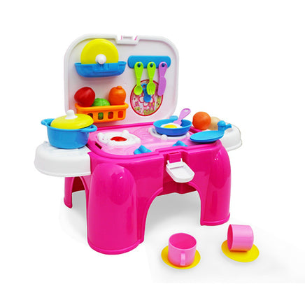The perfect kitchen set for that aspiring little chef. Comes with all the kitchen utensils any little chef needs. Stove top even has lights and sounds so it looks and sounds like a real kitchen!!. All the accessories can be packed back into the toy box for easy storage and when the box is closed it can even be used as a Toddler Seat!!.