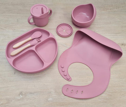 Eco-Friendly Silicone Baby Feeding Set - Dark Pink