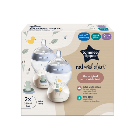 Tommee Tippee award-winning Closer to Nature bottle features an extra wide teat for easy-latch-on. The soft silicone teat flexes and gently elongates for a comfortable feed.