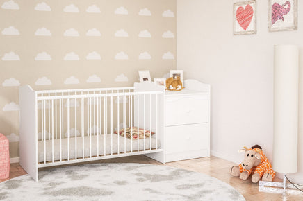 This all-in-one nursery solution is the perfect blend of functionality and exceptional design. Expertly crafted to provide a safe, comfortable sleeping space for your baby, this crib also features an integrated chest of drawers, making it a smart, space-saving choice for any modern home.